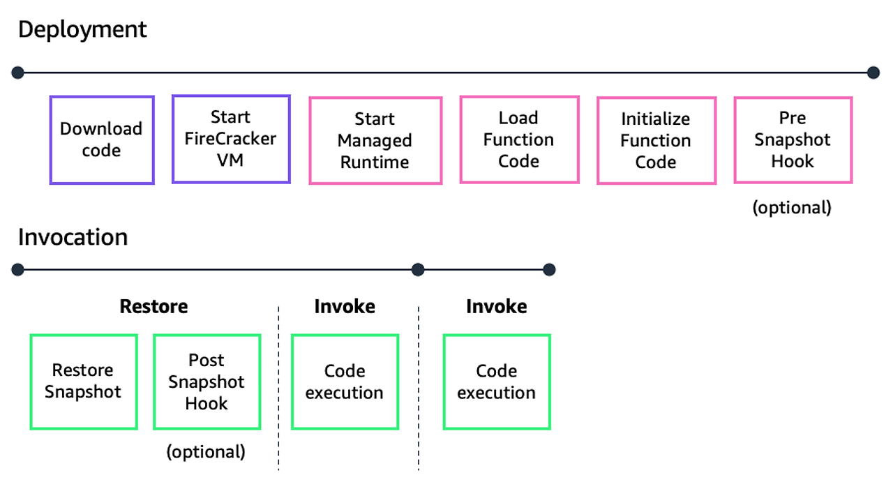 함수의 실행 환경을 실행 시마다 빌드 및 함수 실행의 과정을 거치는것이 런타임 실행전 필요한 실행 환경 시점을 snapshot 형태로 caching 하여 런타임을 실행하는것을 뜻합니다.