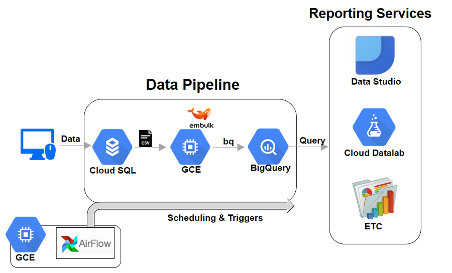 ex) bigquery, s3, 비/관계형 데이터베이스, etc..